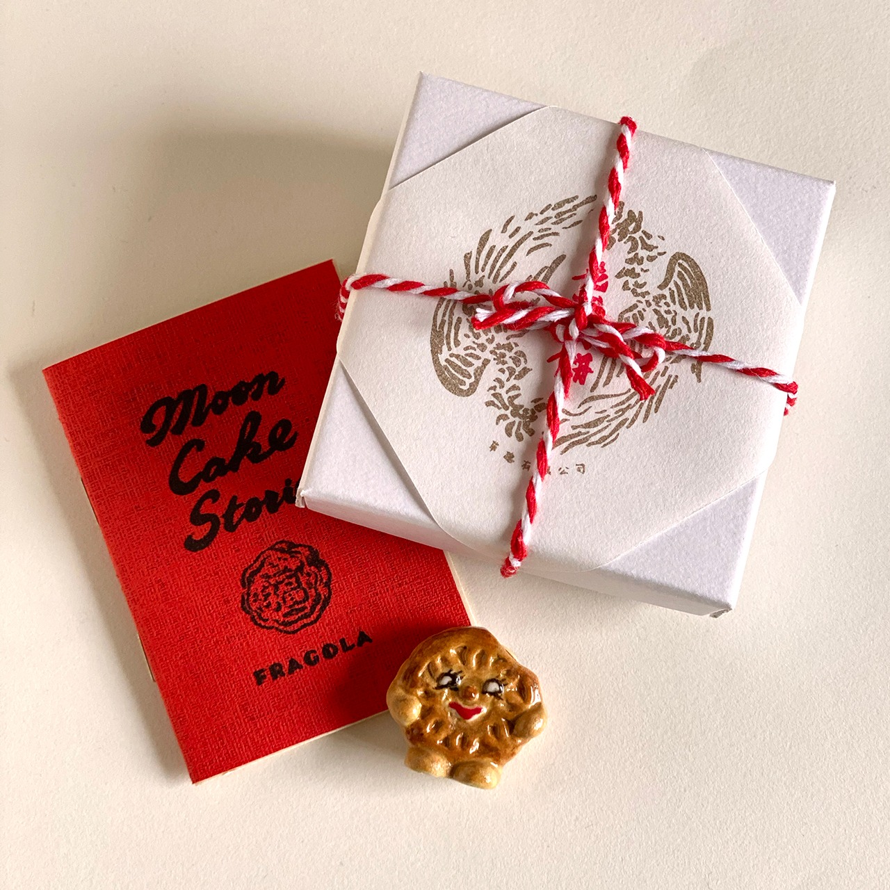 実際の月餅のように箱に入れてオリジナルの掛け紙を掛けて、月餅に関する豆知識を詰め込んだミニZINE「Moon Cake Stories」(A8サイズ、全12ページ)をセットにして、お届け致します。