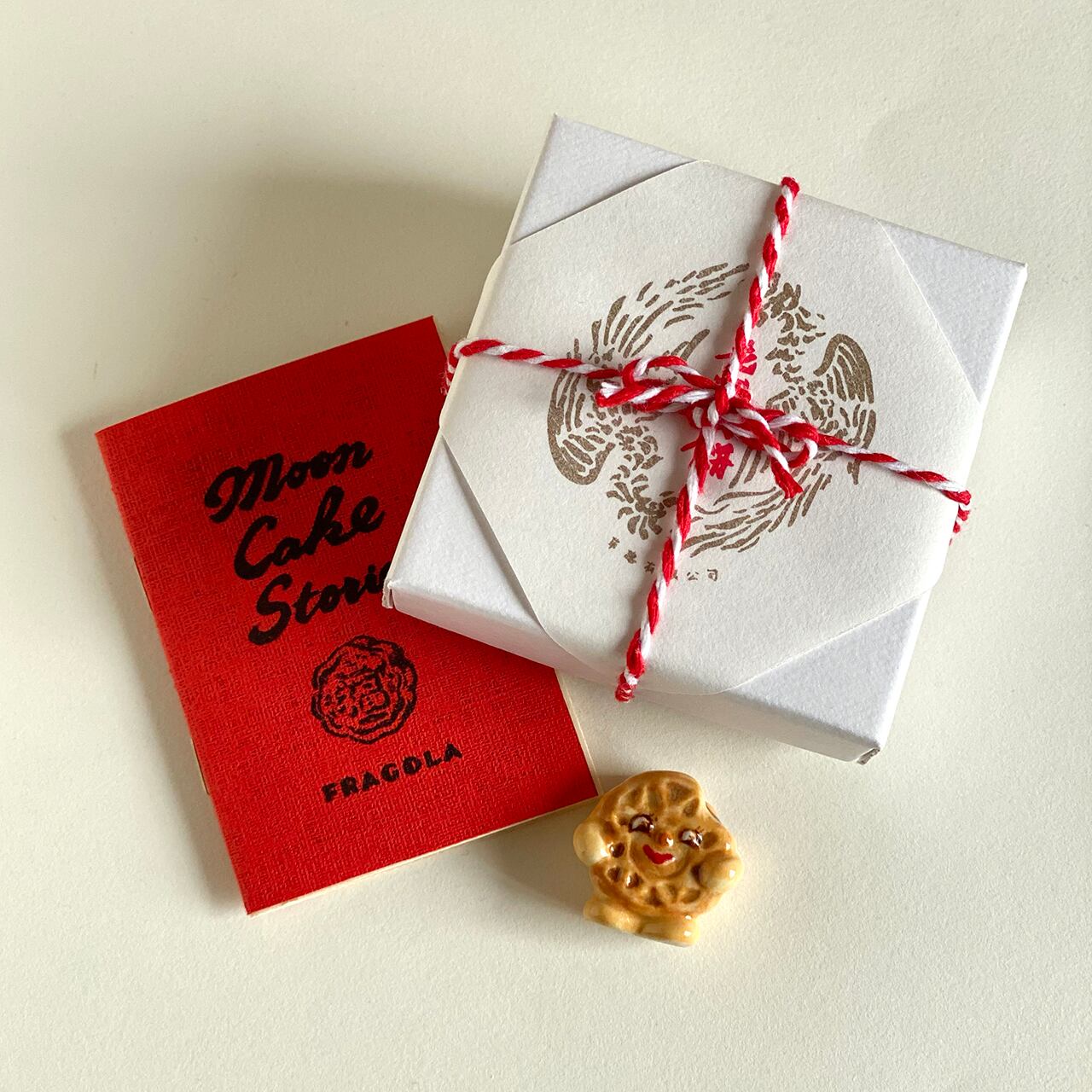 実際の月餅のように箱に入れてオリジナルの掛け紙を掛けて、月餅に関する豆知識を詰め込んだミニZINE「Moon Cake Stories」(A8サイズ、全12ページ)をセットにして、お届け致します。