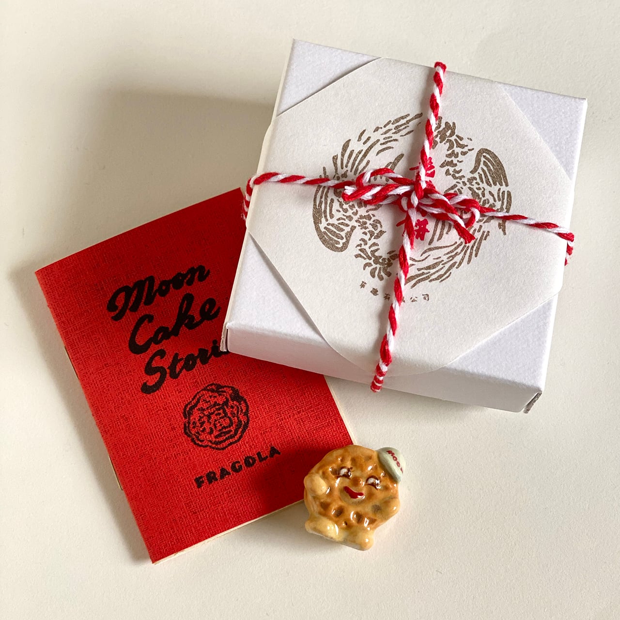 実際の月餅のように箱に入れてオリジナルの掛け紙を掛けて、月餅に関する豆知識を詰め込んだミニZINE「Moon Cake Stories」(A8サイズ、全12ページ)をセットにして、お届け致します。