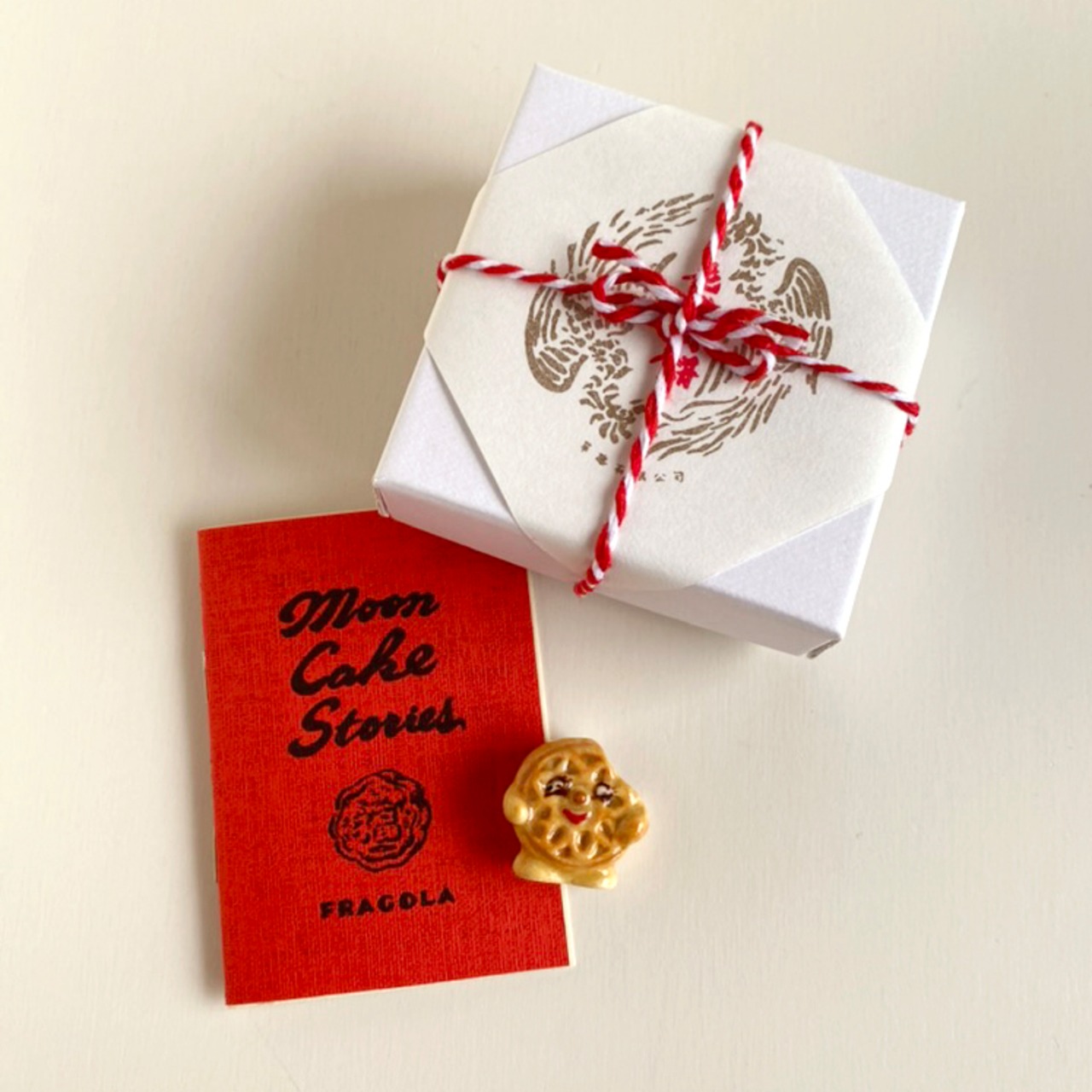 実際の月餅のように箱に入れてオリジナルの掛け紙を掛けて、月餅に関する豆知識を詰め込んだミニZINE「Moon Cake Stories」(A8サイズ、全12ページ)をセットにして、お届け致します。