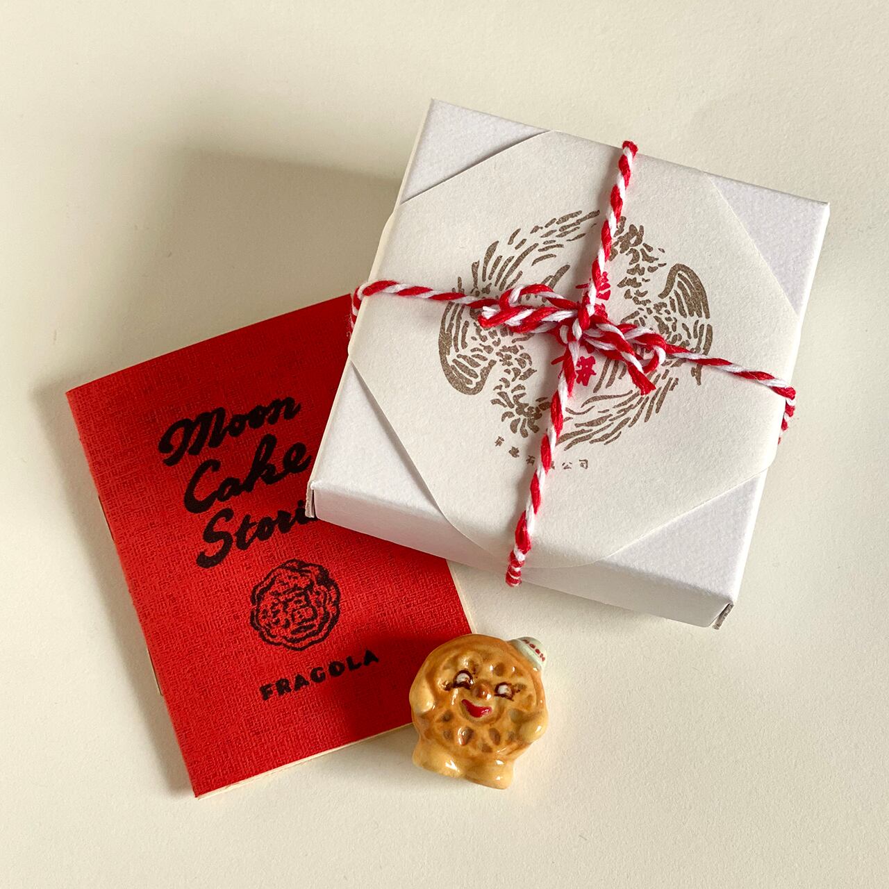 実際の月餅のように箱に入れてオリジナルの掛け紙を掛けて、月餅に関する豆知識を詰め込んだミニZINE「Moon Cake Stories」(A8サイズ、全12ページ)をセットにして、お届け致します。