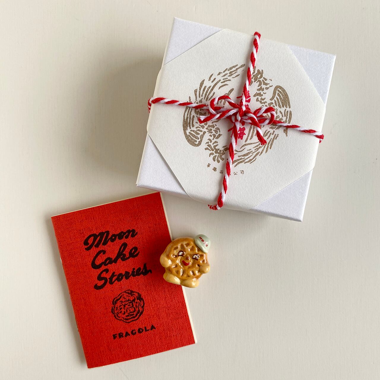 実際の月餅のように箱に入れてオリジナルの掛け紙を掛けて、月餅に関する豆知識を詰め込んだミニZINE「Moon Cake Stories」(A8サイズ、全12ページ)をセットにして、お届け致します。