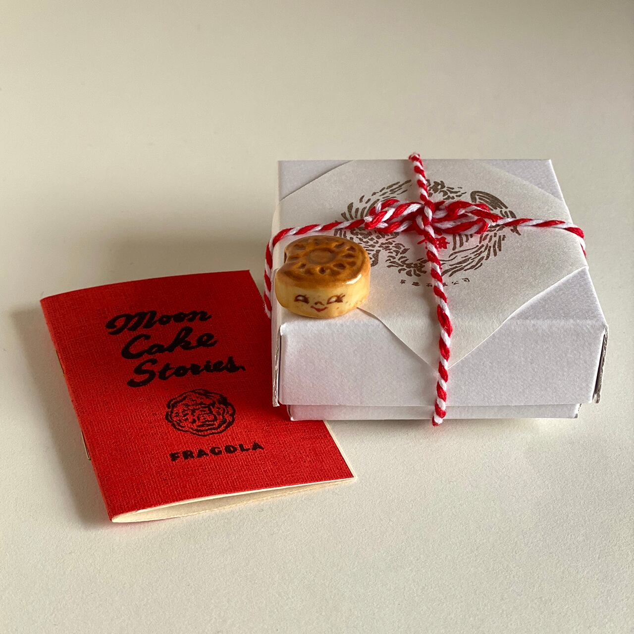 実際の月餅のように箱に入れてオリジナルの掛け紙を掛けて、月餅に関する豆知識を詰め込んだミニZINE「Moon Cake Stories」(A8サイズ、全12ページ)をセットにして、お届け致します。