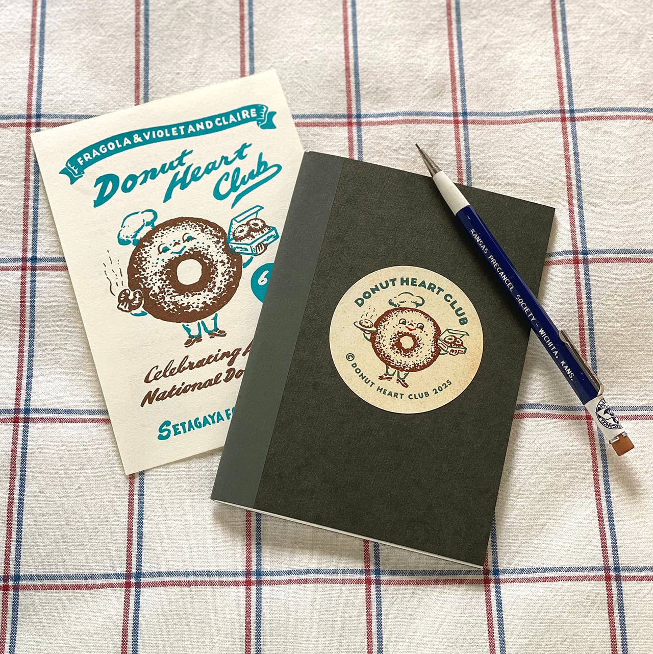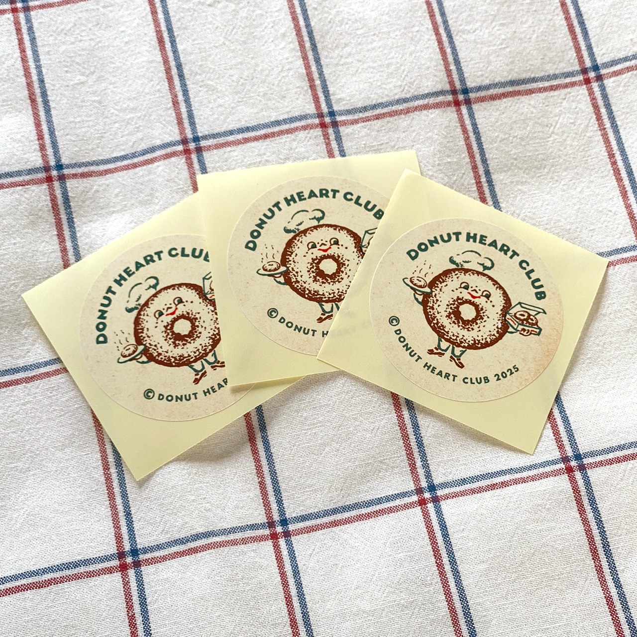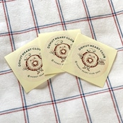 おいしそうなドーナツをいっぱい持って嬉しそうにほほえむMr.Donut Heart柄の2025エディションのステッカー。