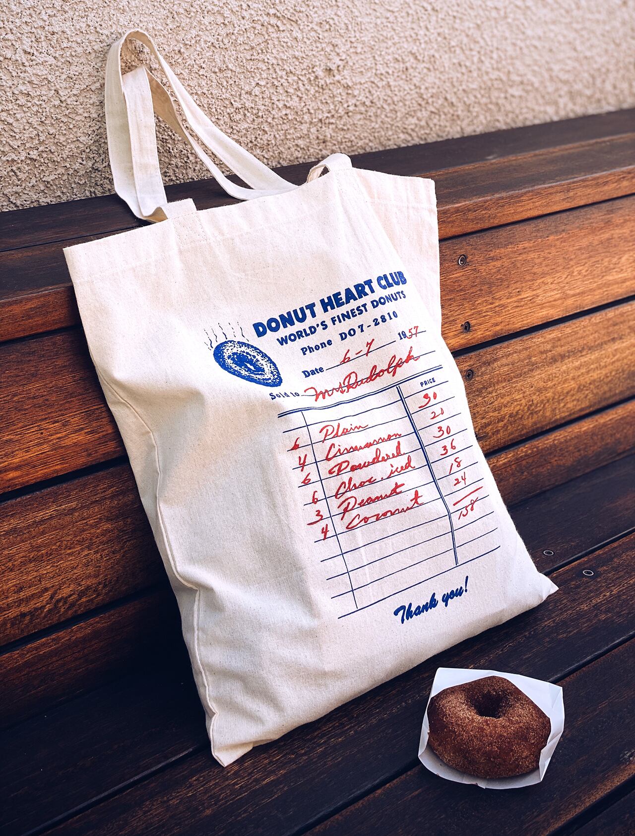 2025エディションのトートバッグは、Donut Heart Clubのお店で昔使っていた注文伝票をイメージ。